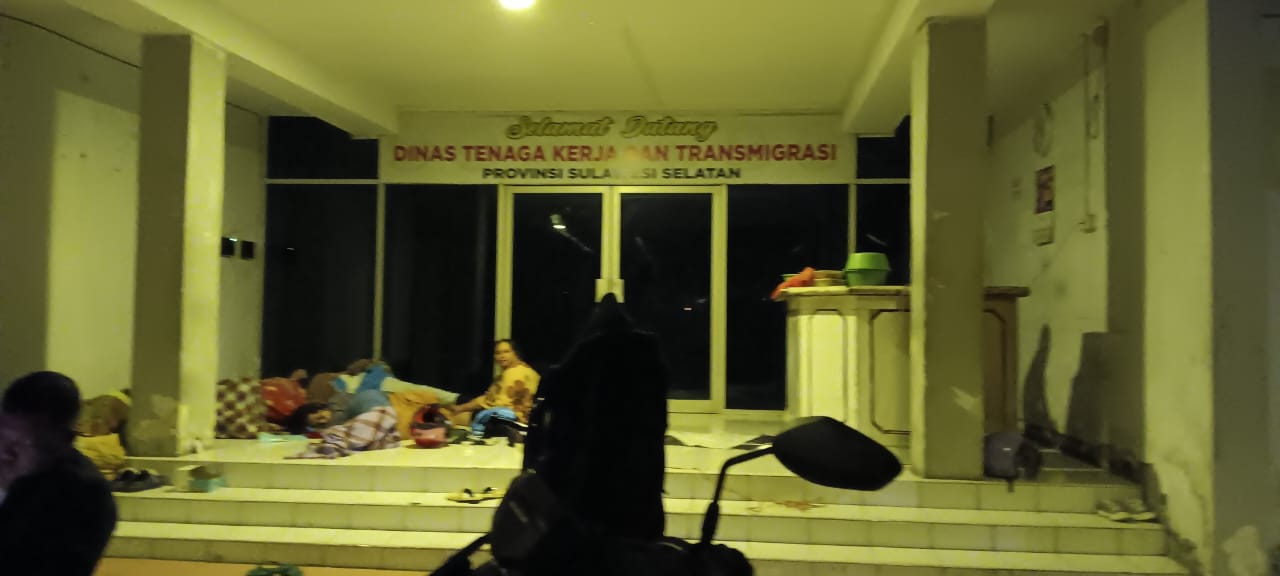 Makassar, SPNews – Puluhan buruh PT Ocean Champ Seafood (OCS) yang tergabung dalam Serikat Pekerja Nasional (SPN) menggelar aksi dengan mendirikan tenda dan bermalam di halaman Kantor Dinas Tenaga Kerja dan Transmigrasi (Disnakertrans) Provinsi Sulawesi Selatan, Jalan Perintis Kemerdekaan Km.12, Tamalanrea, Makassar, pada Selasa (6/5/2025). Aksi ini merupakan bentuk protes atas hak 54 buruh yang dirumahkan tanpa pembayaran upah oleh manajemen perusahaan selama tiga tahun terakhir.
