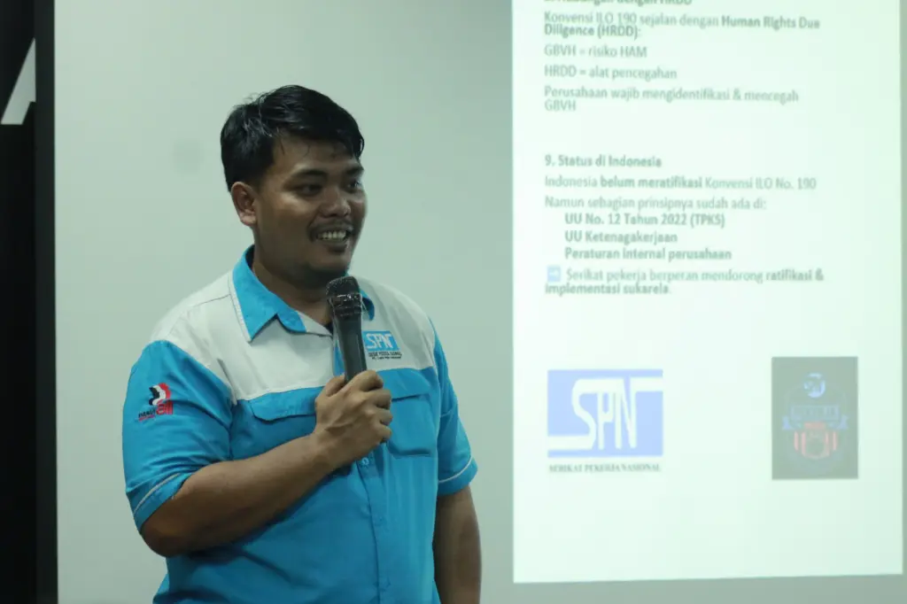 Pencegahan GBVH merupakan bagian tak terpisahkan dari penerapan HRDD. Bung Rizky menekankan bahwa serikat pekerja memiliki peran sangat strategis.