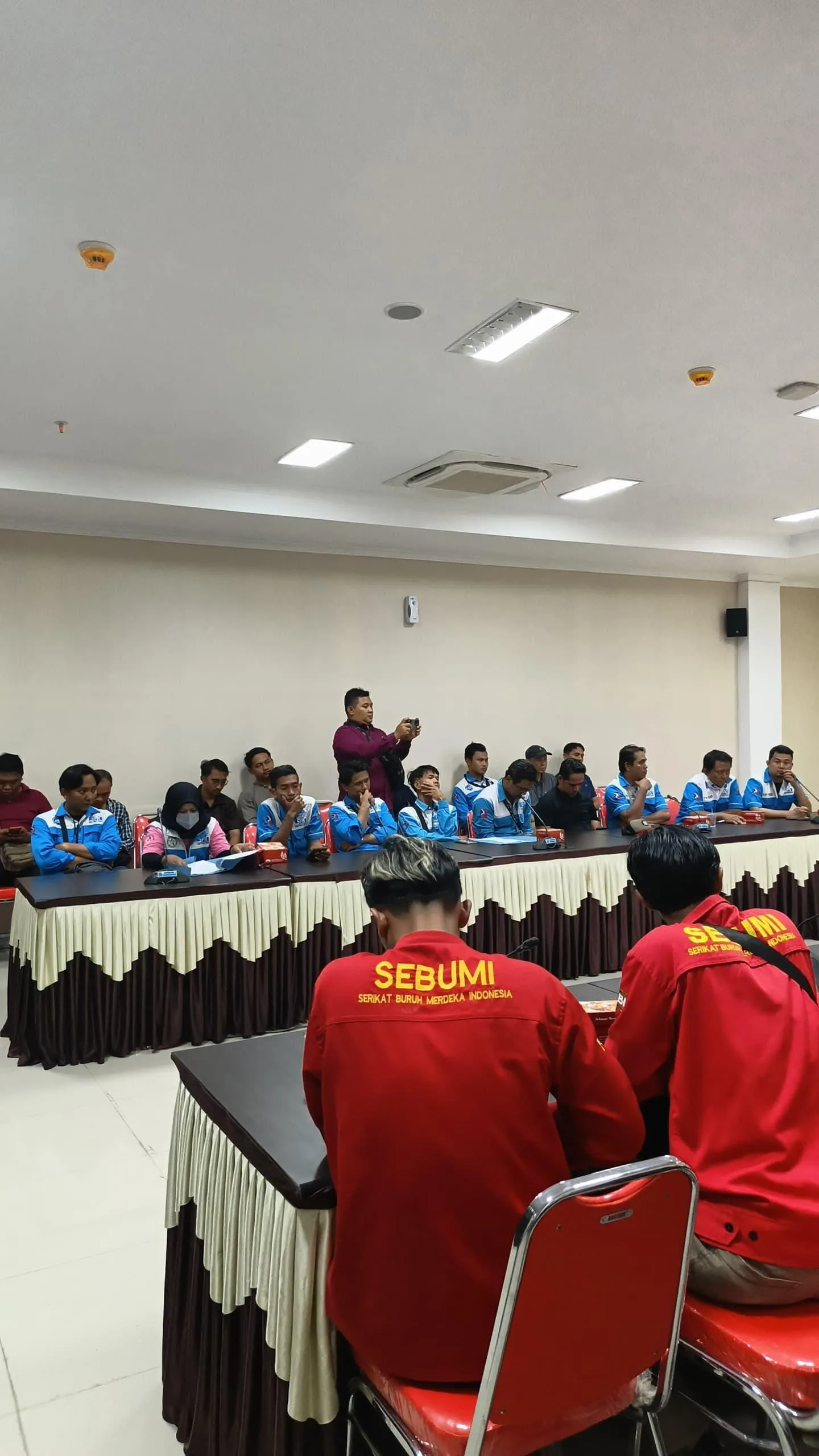 Pukul 10.30 WIB, perwakilan buruh masuk ruang audiensi. Wakil Bupati Brebes, Wurja, SE, menerima mereka langsung. Kepala Disnaker Brebes, Warsito Eko Putra, S.Sos, ikut mendampingi. Pertemuan berlangsung tertutup selama satu jam. Suasana tetap kondusif.