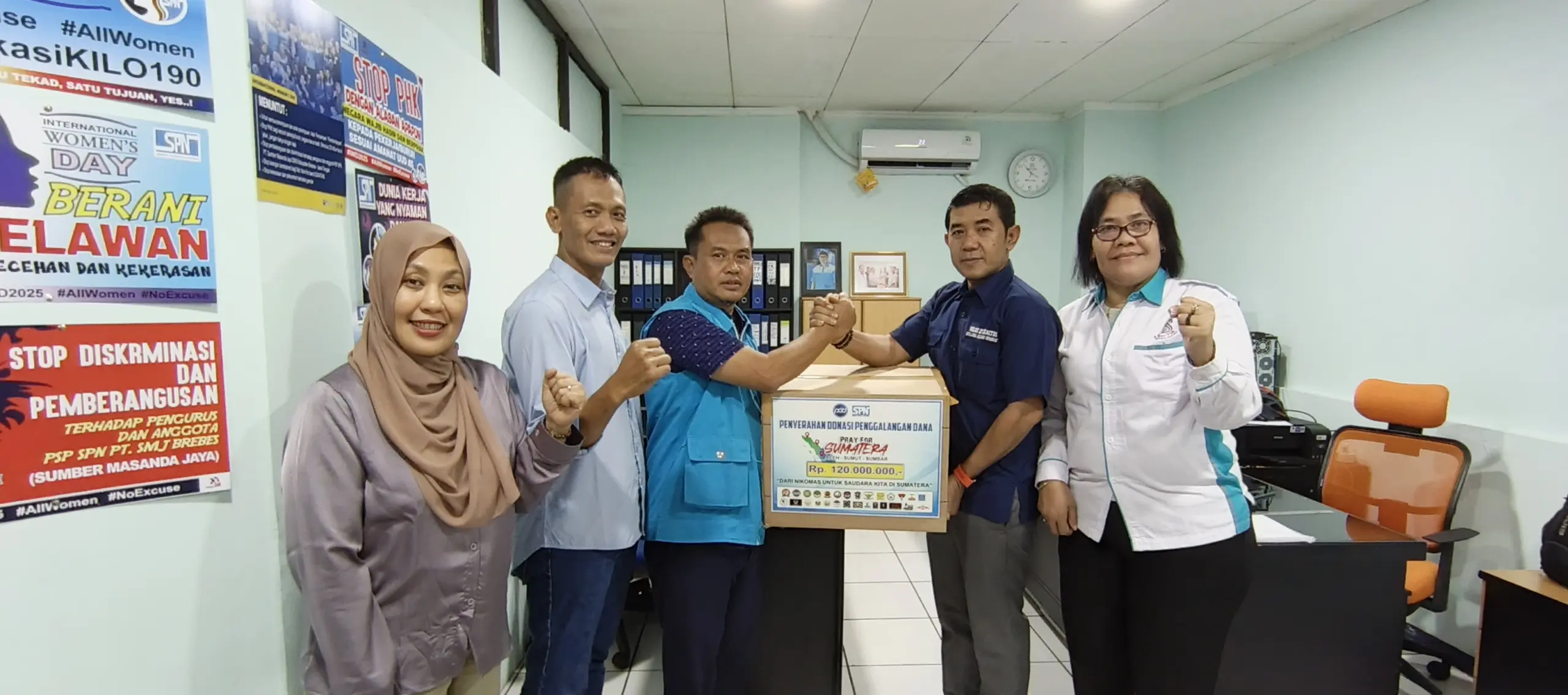 Suprihat menyerahkan total donasi Rp 120 juta kepada DPP SPN. Ia didampingi jajaran pengurus, Laskar Nasional, dan belasan komunitas internal.